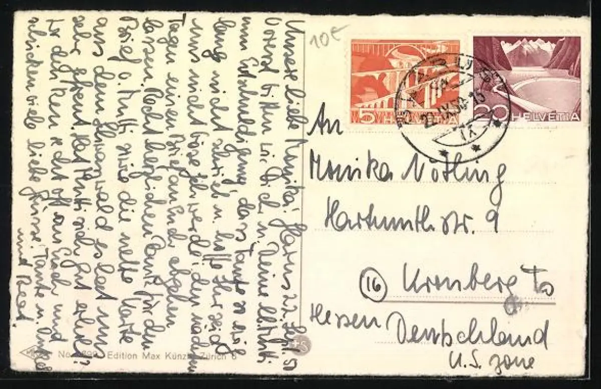 gelaufen 1950, Eckknick oben rechts, guter Zustand