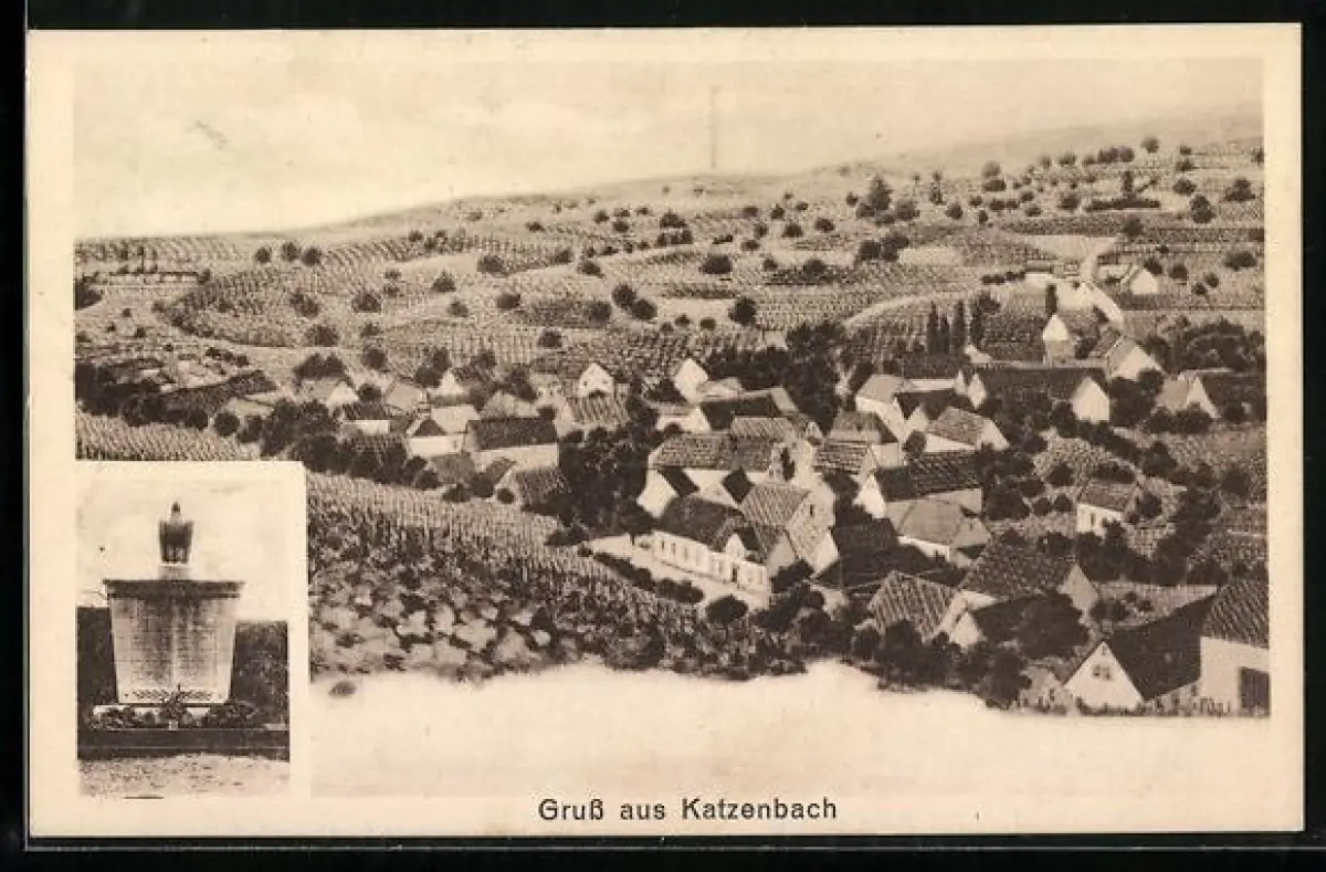 AK Katzenbach, Totalansicht des Ortes und Denkmal