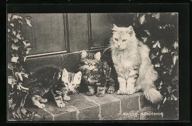 AK Katzenmutter und zwei Junge vor einer Haustür