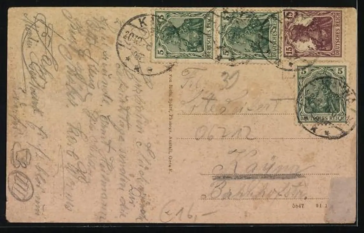 alte Ansichtskarte, gelaufen, rückseitig Klebe- und Papierreste, kleiner Einriss rechts unten, sonst guter Zustand