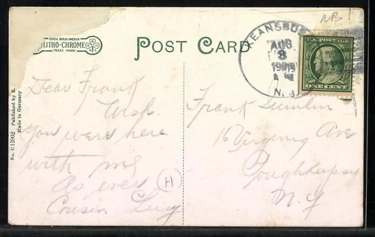 gelaufen 1909, rückseitig Klebe- und Papierreste, guter Zustand