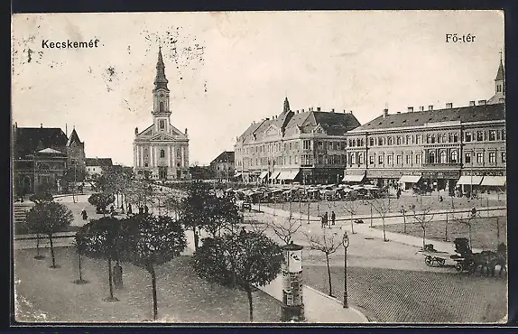 AK Kecskemet, Ausblick auf Markt und Kirche