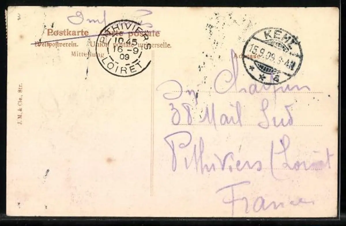 alte Ansichtskarte, gelaufen 1909, guter Zustand