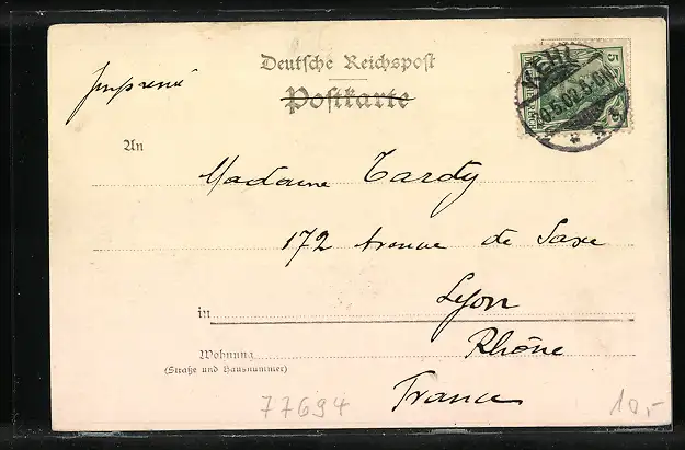 alte Ansichtskarte, gelaufen 1902, Stempelspur, guter Zustand