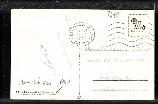 alte Ansichtskarte, gelaufen 1952, Briefmarke entfernt, guter Zustand