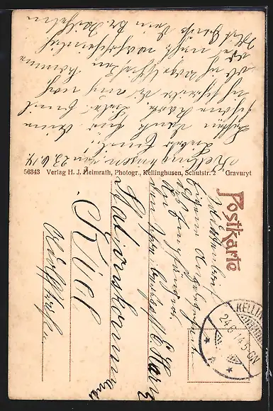 gelaufen 1914, Eckknicke li. oben u. re. unten, guter Zustand