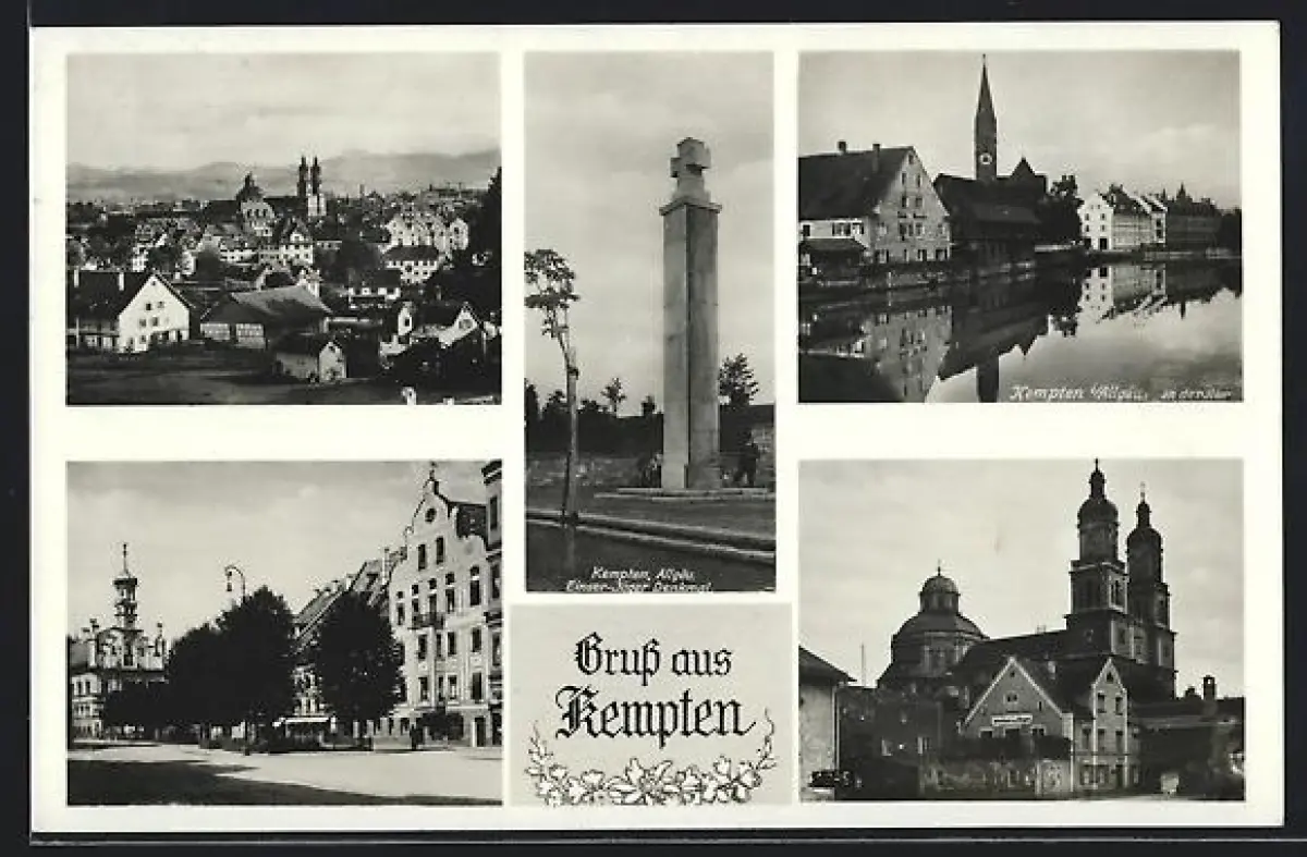AK Kempten /Allgäu, Denkmal, Flusspartie im Ort