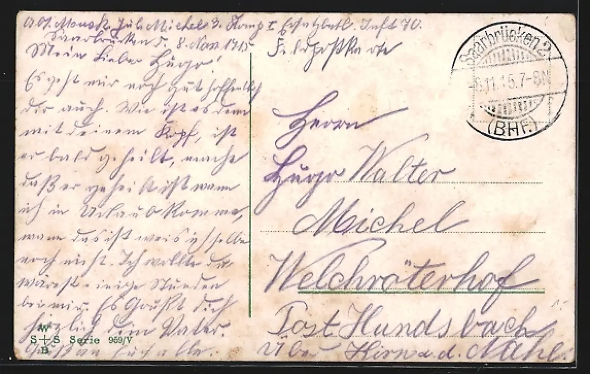 gelaufen 1916, Eckknick unten li. u. oben re., guter Zustand