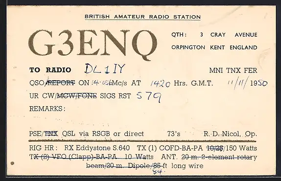 AK Kent in England, Radio DL1iY, Station G3ENQ