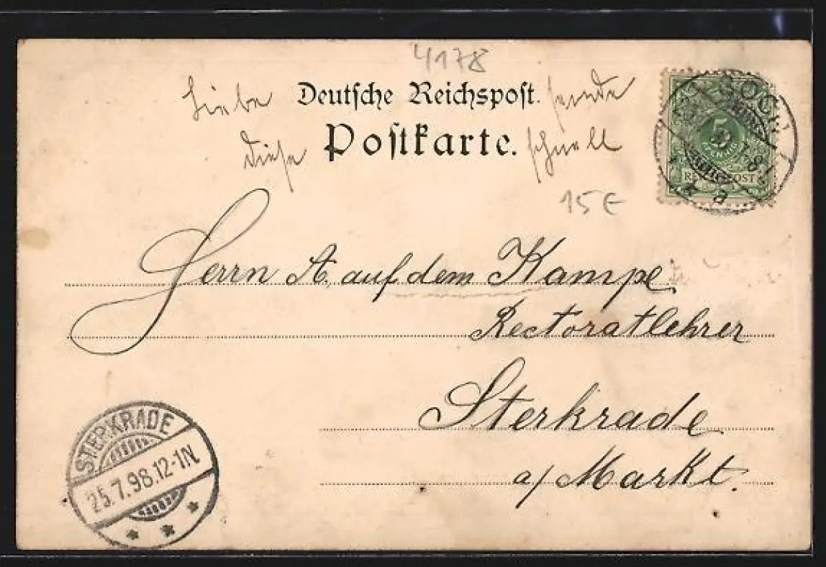 alte Ansichtskarte, gelaufen 1898, guter Zustand