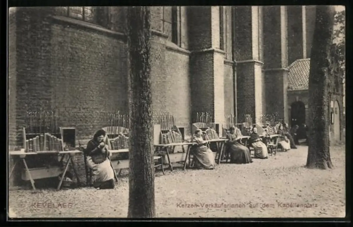 AK Kevelaer, Kerzen-Verkäuferinnen auf dem Kapellenplatz, Stadttyp