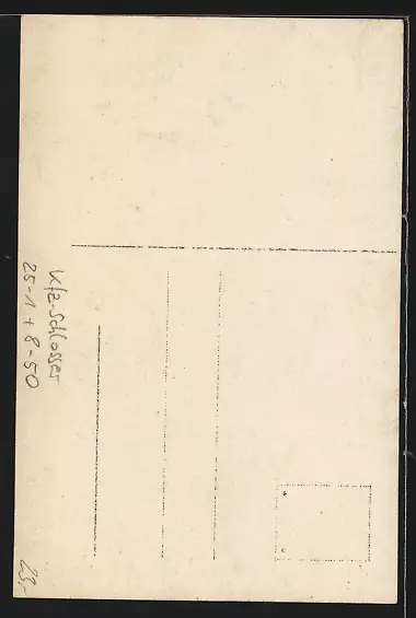 Personenbezogene Daten auf der Rückseite der Karte wurden durch blauen Textmarker unkenntlich gemacht. Die blauen Stellen sind auf die Vorderseite durchgeweicht und wirken sich negativ auf das Postkartenfoto aus