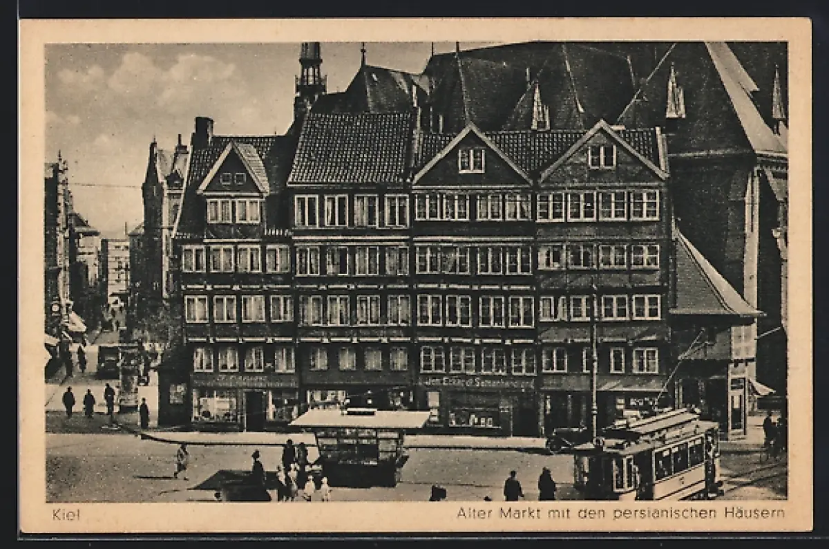 AK Kiel, Alter Markt mit den persianischen Häusern und Strassenbahn