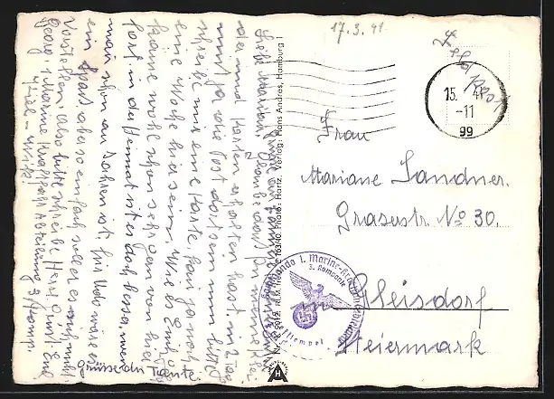 alte Ansichtskarte, gelaufen 1899, guter Zustand
