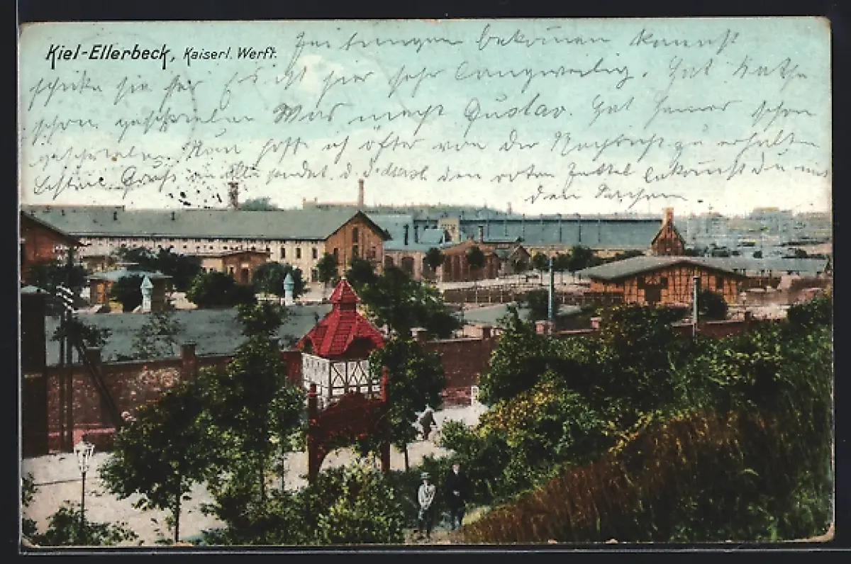 AK Kiel-Ellerbeck, Kaiserliche Werft, Ortspartie im Hafen