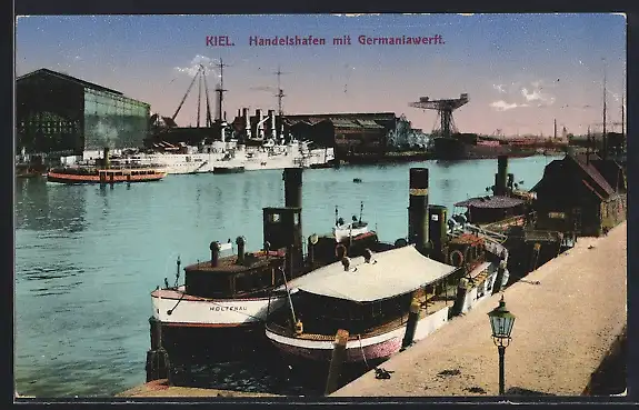 AK Kiel, Handelshafen mit Germaniawerft, Schiffe