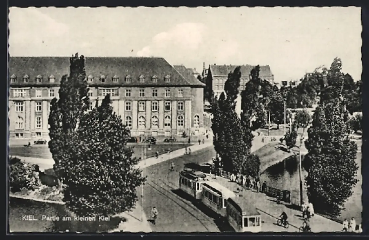 AK Kiel, Strassenpartie am kleinen Kiel mit Strassenbahn