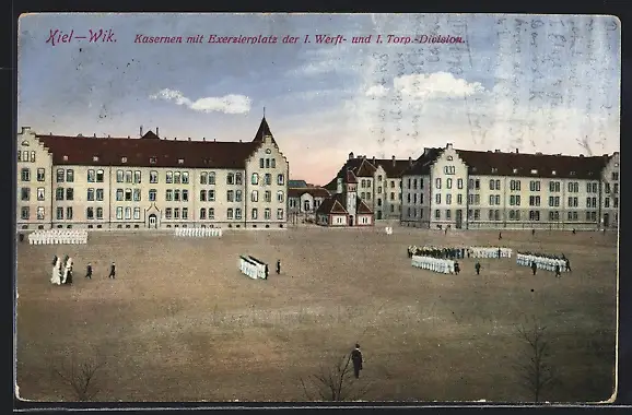 AK Kiel-Wik, Kasernen mit Exerzierplatz der 1. Werft- und 1. Torp-Division