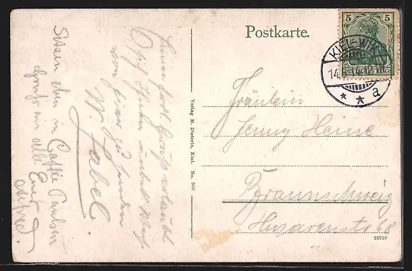 alte Ansichtskarte, gelaufen 1914, rückseitig Oberflächenschaden, Bugspur re. oben, guter Zustand