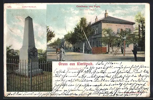 AK Kieritzsch, Gasthaus zur Post, Inh. Osc. Förster, Luther-Denkmal