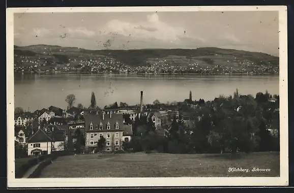 AK Kilchberg, Schooren, Ortsansicht mit Gewässer aus der Vogelschau