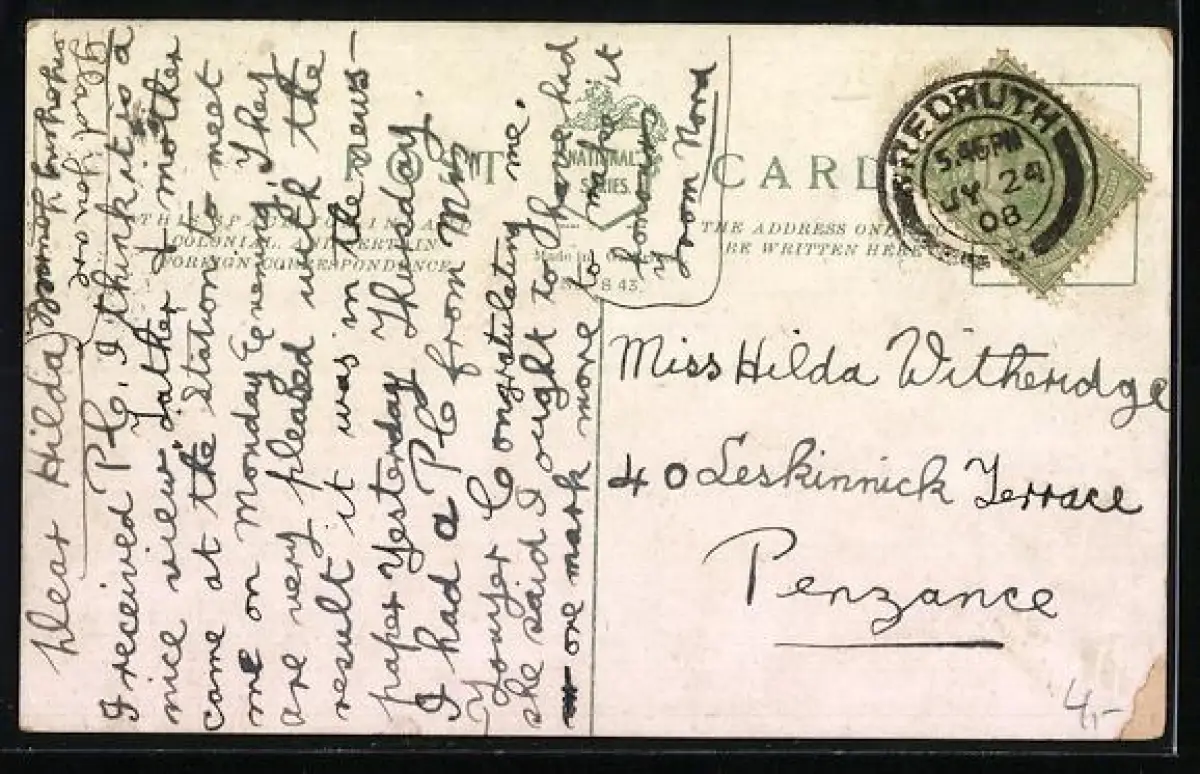 gelaufen 1908, Eckknick li. unten, rückseitig Oberflächenschaden, guter Zustand