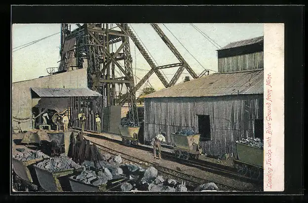 AK Kimberley, Loading Trucks with Blue Ground from Mine, Diamanten-Mine