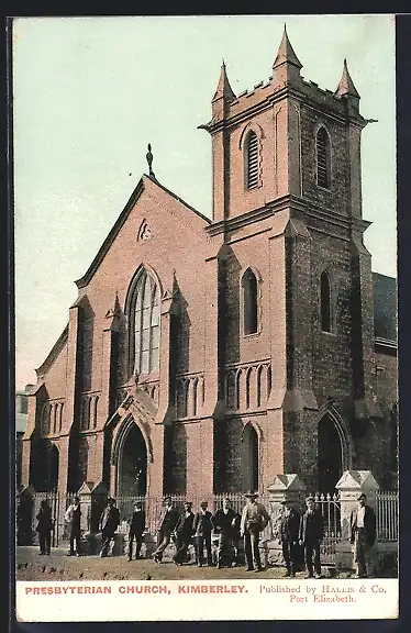 AK Kimberley, Presbyterian Church with People Posing by the Fence