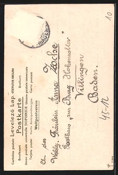 alte Ansichtskarte, gelaufen, Briefmarke entfernt, rückseitig Oberflächenschaden, guter Zustand