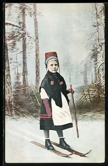 AK Kind in Winterkleidung auf Skiern