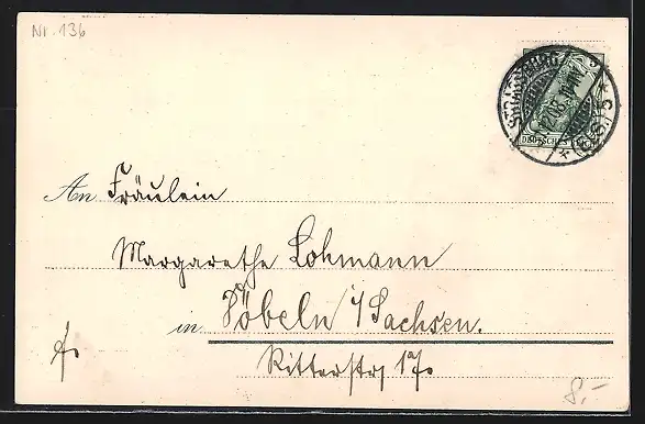 alte Ansichtskarte, gelaufen 1908, Stempelspur, guter Zustand
