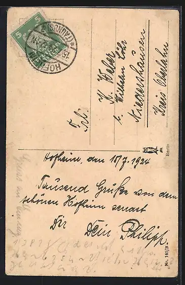alte Ansichtskarte, gelaufen 1924, Bugspur mittig, guter Zustand