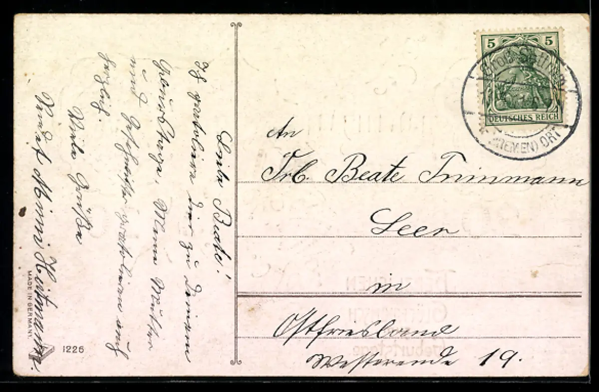 gelaufen 1911, Stempelspur, Bugspur links unten, guter Zustand