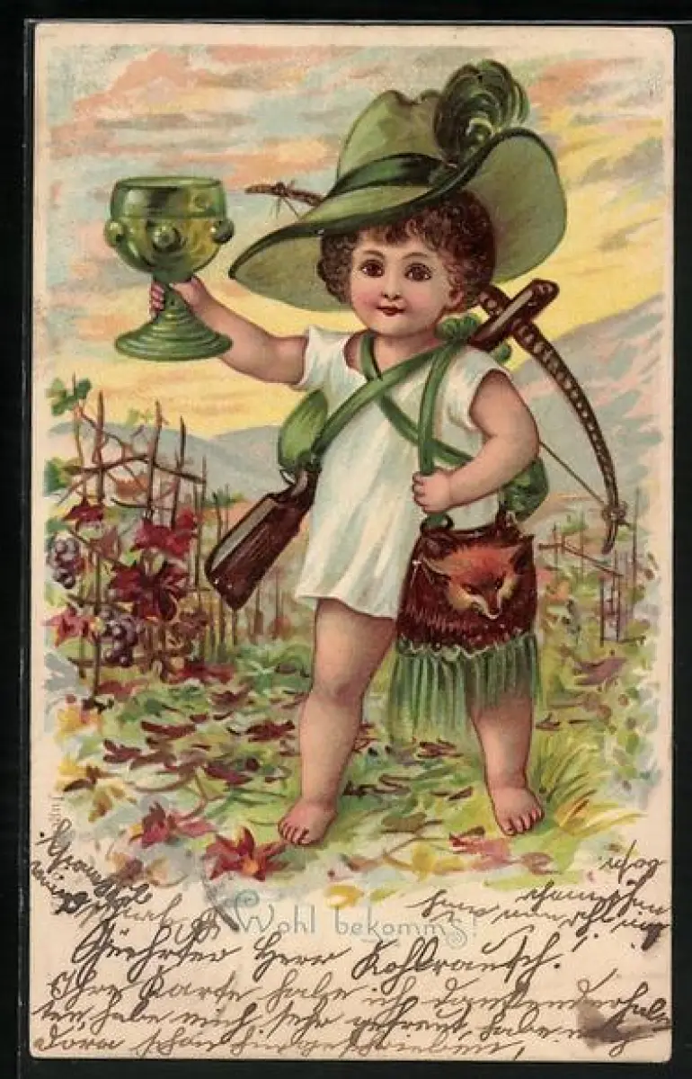 AK Kind mit einem Gewehr und Pokal im weissen Hemd