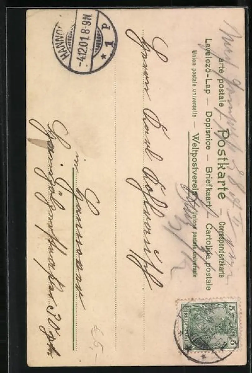 alte Ansichtskarte, gelaufen 1901, guter Zustand