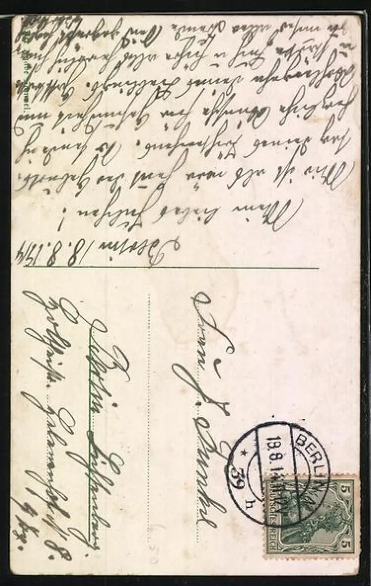 alte Ansichtskarte, gelaufen 1914, Eckknick li. unten, guter Zustand