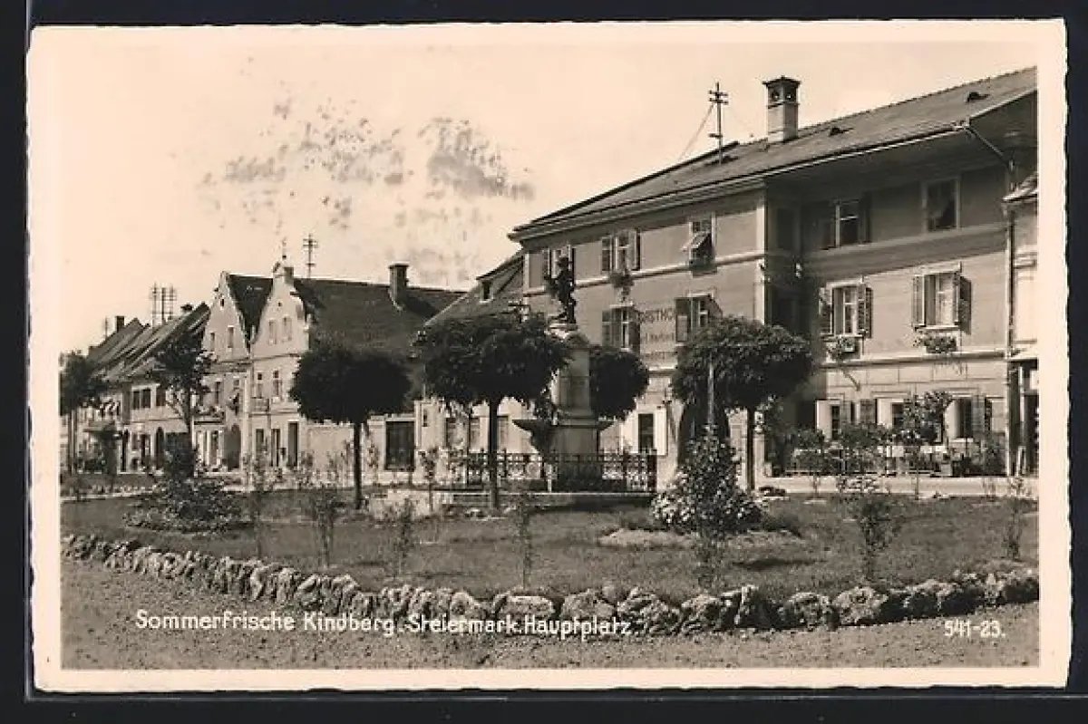 AK Kindberg, Hauptplatz mit Gasthof von Karl Hartmann