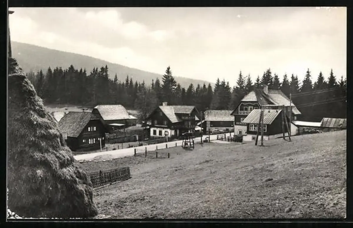 AK Kindberg, Ortspartie mit Berggasthof Schanz