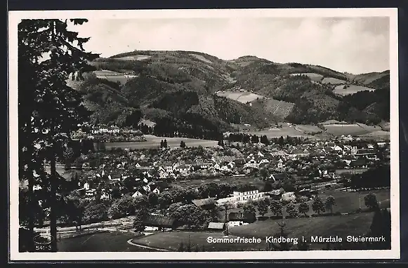 AK Kindberg i. Mürztale, Ortsansicht von einen Berg aus