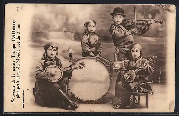AK Kinder Jazz-Band Fallone mit Instrumenten