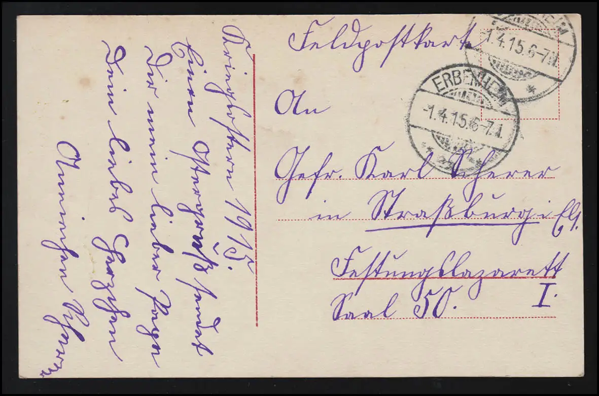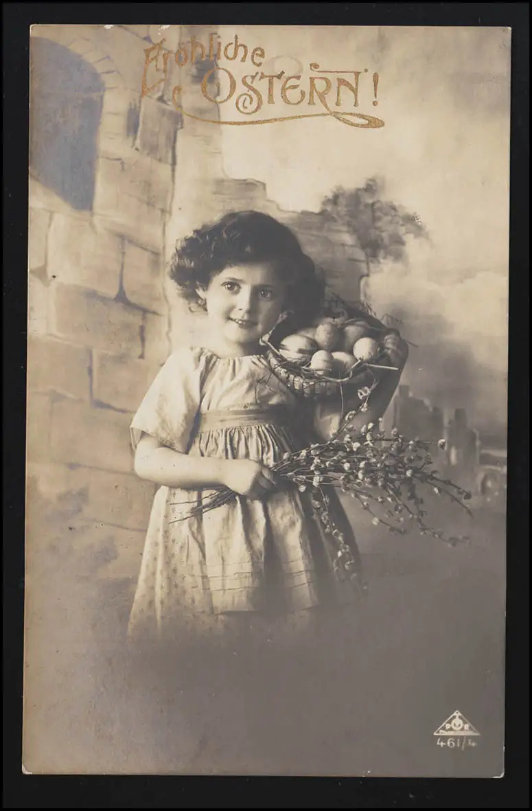AK Kinder Mädchen mit Korb Ostereier Weidenkätzchen, Feldpost ERBENHEIM 1.4.15