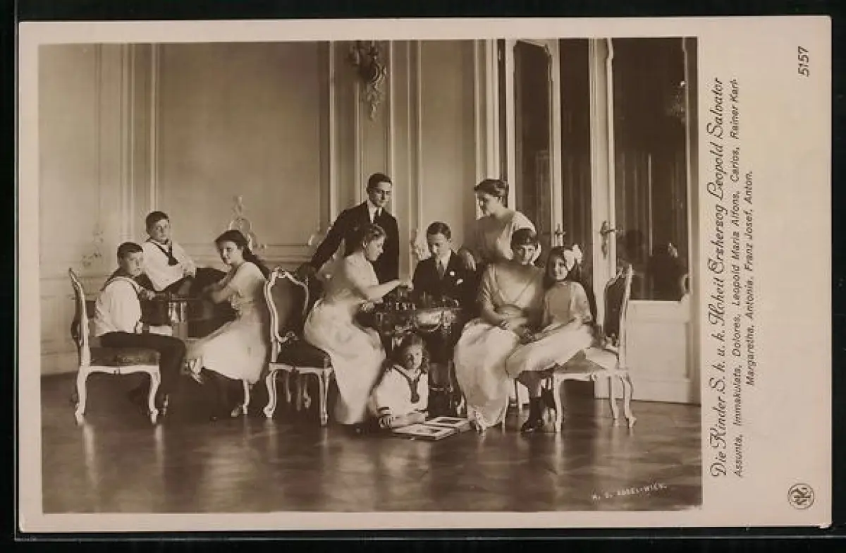 AK Kinder S. k. u. k. Hoheit Erzherzog Leopold Salvator: Leopold Maria Alfons, Carlos, Reiner Karl