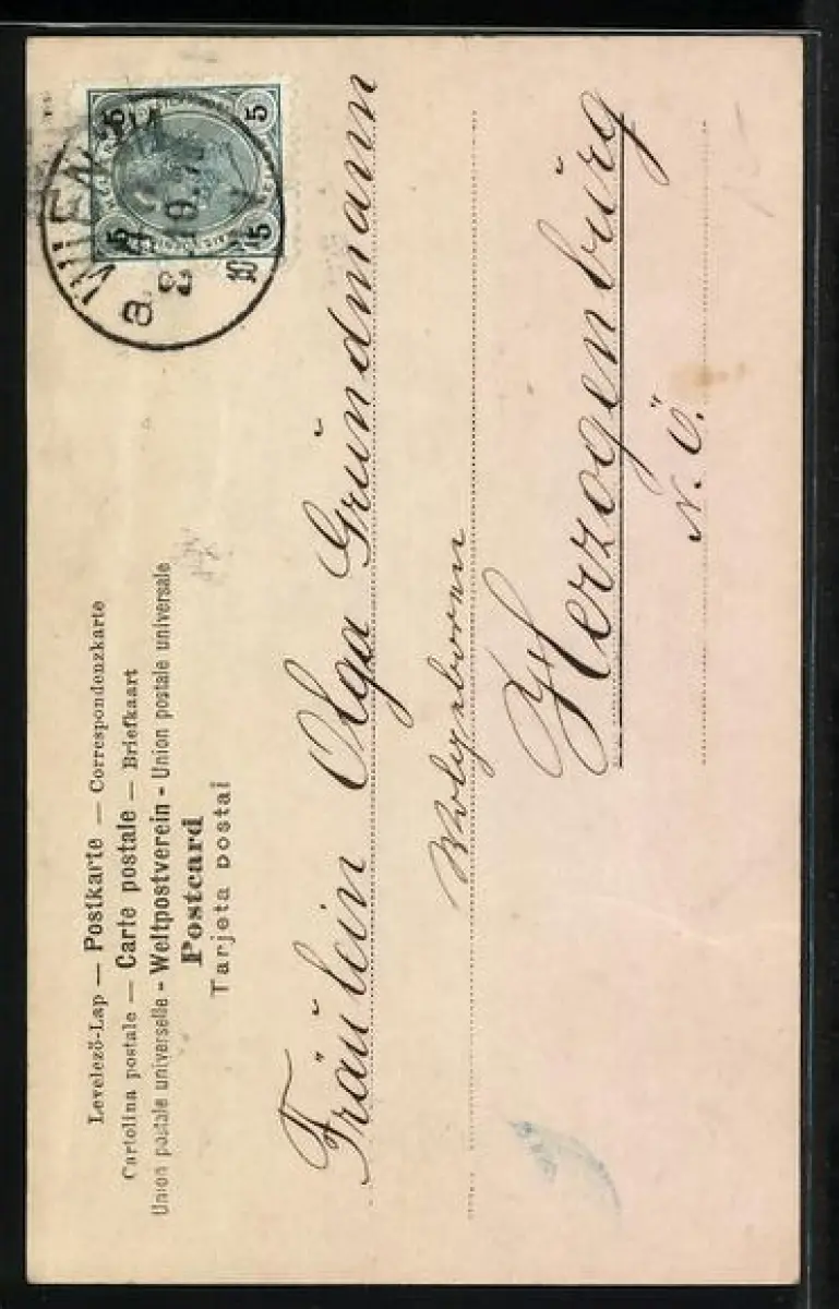 alte Ansichtskarte, gelaufen, Bugspuren re. oben, guter Zustand