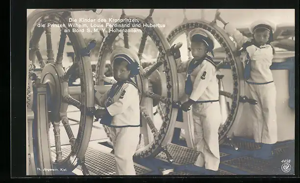 AK Kinder des Kronprinzen Wilhelm, Louis, Ferdinand und Hubertus an Bord der S.M.S. Hohenzollern