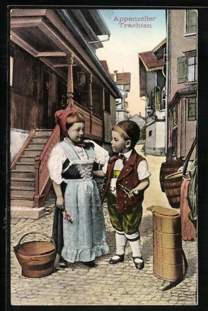 AK Kinder in Appenzeller Trachten auf einem Dorfplatz