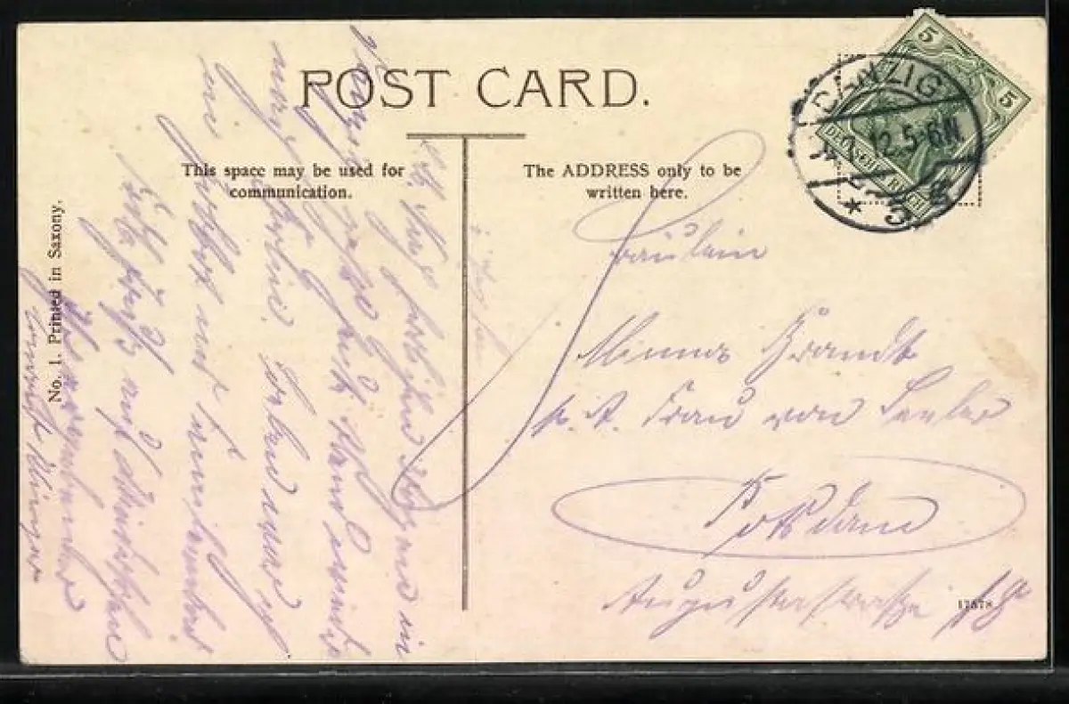 alte Ansichtskarte, gelaufen 1912, Stempelspur, Eckknick links unten, guter Zustand