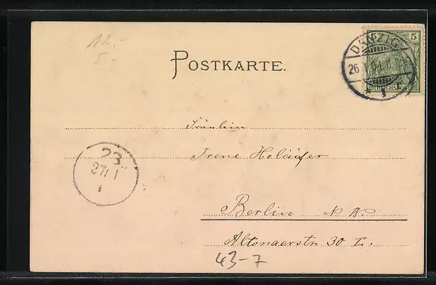 alte Ansichtskarte, gelaufen 1901, Stempelspur, guter Zustand