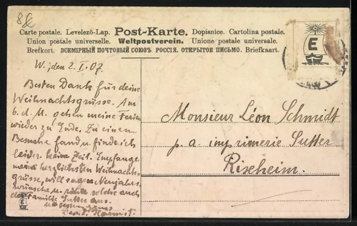 alte Ansichtskarte, gelaufen, Briefmarke entfernt, guter Zustand