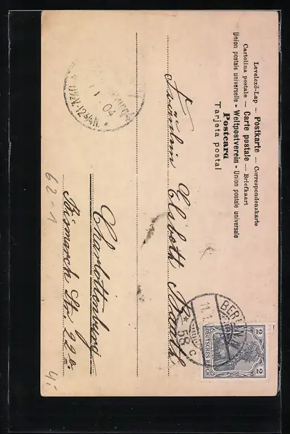 alte Ansichtskarte, gelaufen 1904, guter Zustand
