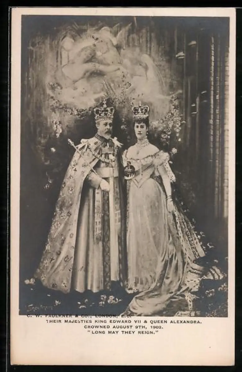 AK King Edward VII & Queen Alexandra mit Kronen in eleganter Königsrobe
